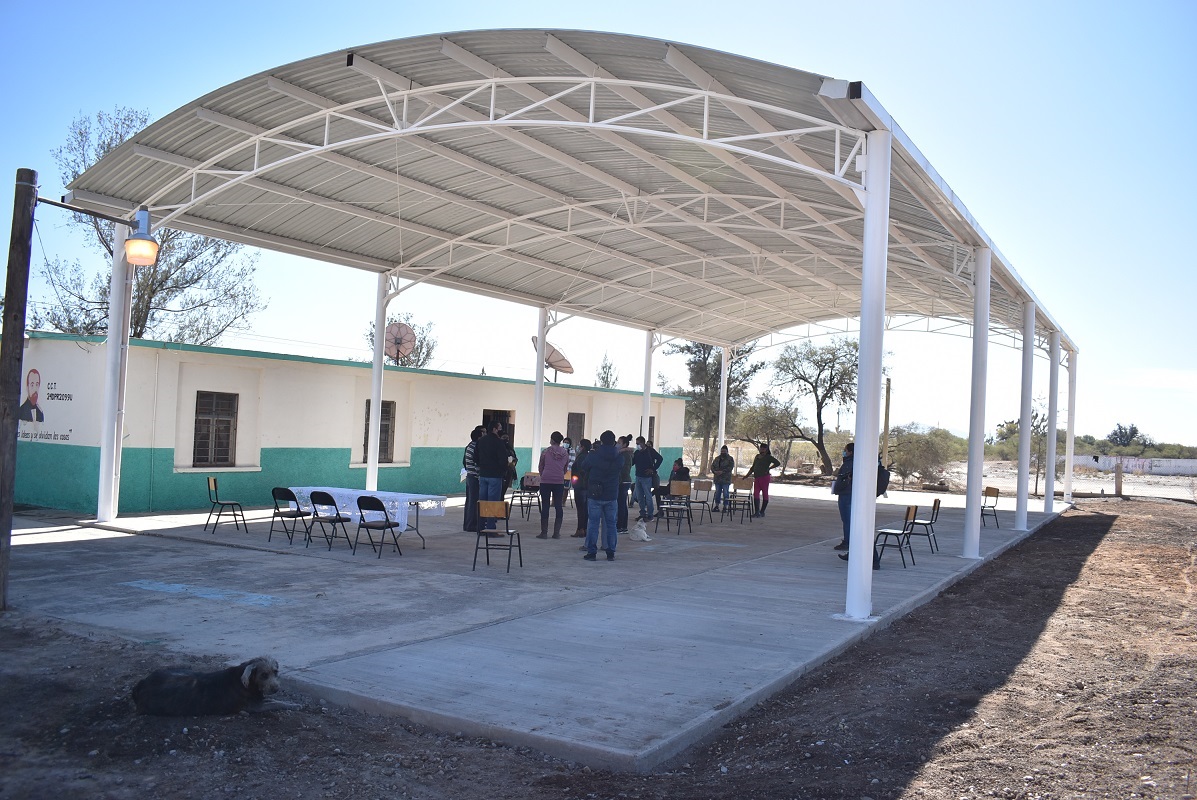 –  Techado en el área cívica  de la Escuela Primaria Ponciano Arriaga en la comunidad de  Santa Ana.