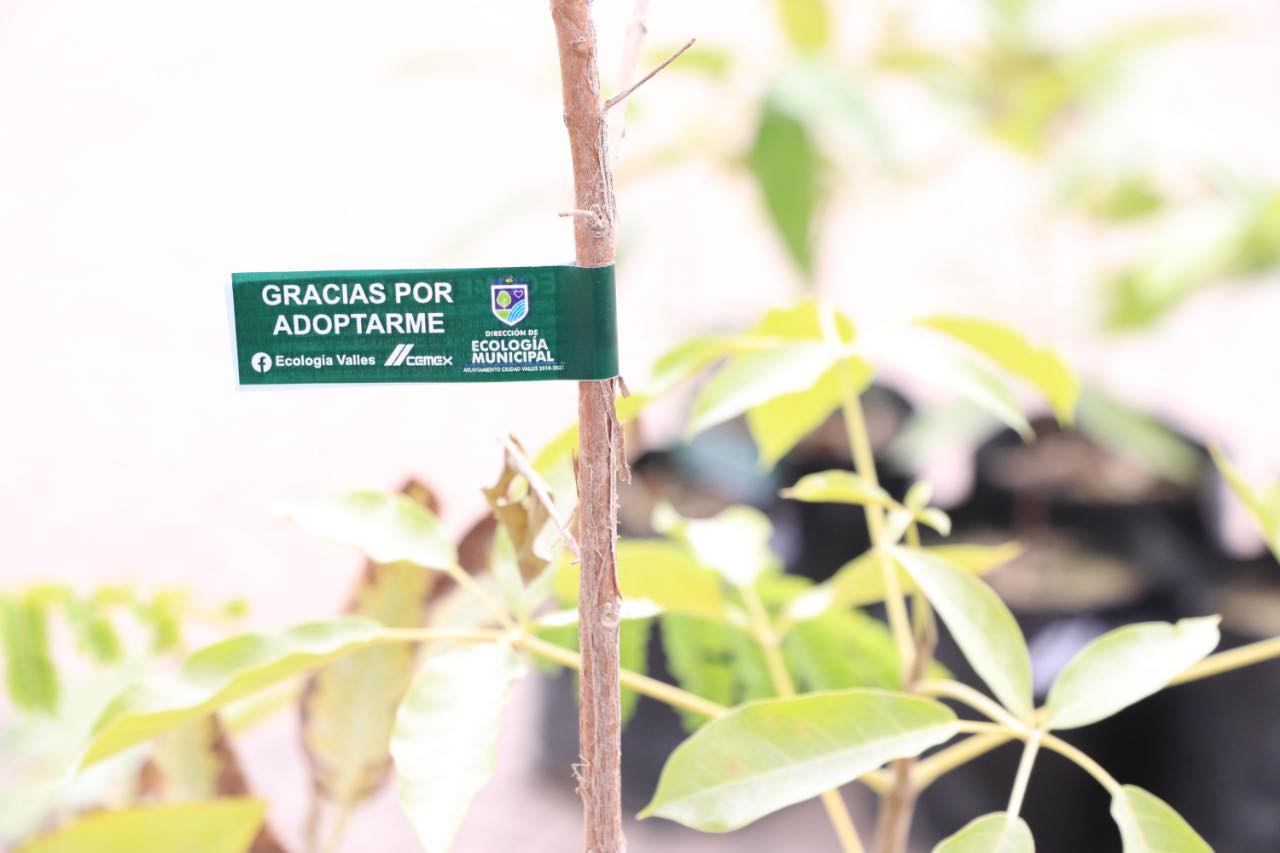 Ciudad Valles, S.L.P.- La Dirección de Ecología en coordinación con la empresa Cemex realizó esta mañana en la plaza principal, la donación de más de 350 árboles de diferentes especies, dentro del programa «Adopta un árbol».