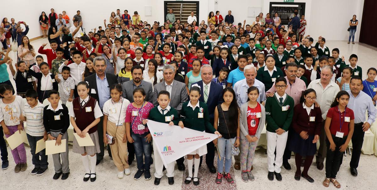 “Esta Delegación Potosina de 150 alumnos destacados que por su dedicación y aprovechamiento son una muestra clara de la niñez estudiosa y comprometida con el presente y futuro de México, son sin duda un modelo a seguir para sus compañeros”, así se expresó el Secretario de Educación de Gobierno del Estado, Joel Ramírez Díaz al abanderar a los 150 alumnos que obtuvieron los mejores puntajes en la Olimpiada del Conocimiento Infantil (OCI) 2019 en su etapa censal.