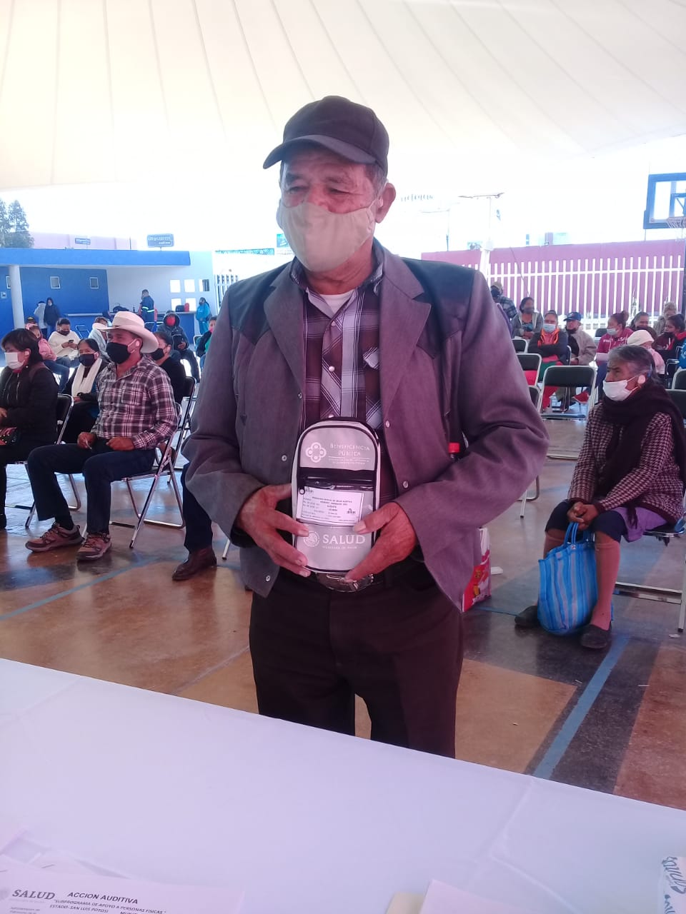Éste beneficio fue para cuatro adultos de 54, 58, 81 y 77 años de edad quienes recibieron sus auxiliares auditivos en la ciudad de San Luis Potosí, en donde se les traslado por parte del DIF Municipal al Centro de Rehabilitación y Educación Especial (CREE), para la entrega de los aparatos, en el lugar se corroboraron las audiometrías y toma de moldes para los beneficiados.