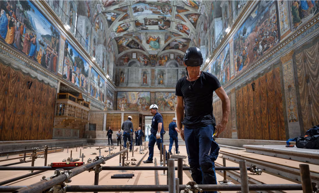 El Vaticano está preparando la Capilla Sixtina para que se realice en orden el cónclave, esta mañana se terminó de instalar la estufa donde se quemarán las papeletas durante la elección del nuevo papa.