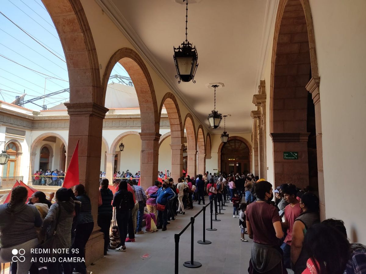 Con multitudinaria manifestación al interior de Palacio de Gobierno del Estado, representaciones de antorchistas de la entidad, piden al gobernador Juan Manuel Carreras López, que intervenga para que altos funcionarios de la administración estatal cumplan sus compromisos firmados de realización de obras básicas que requieren miles de potosinos en situación de pobreza.