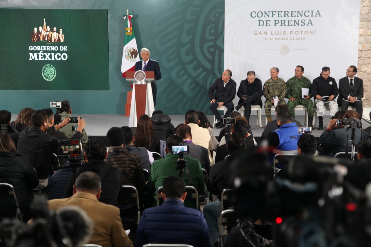 Durante un encuentro con medios de comunicación, el Presidente de México Andrés Manuel López Obrador dijo que San Luis Potosí cuenta con todo el respaldo de su gobierno para impulsar proyectos estratégicos que impacten en el desarrollo de sus habitantes y el crecimiento de la región, como es la protección a la Sierra de San Miguelito y el equipamiento del Hospital Central “Ignacio Morones Prieto”.