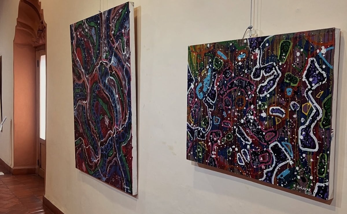 El promotor cultural de la UASLP señaló que el recinto alberga las exposiciones “Herencias Míticas”, de Ernesto Novelo; “Horizonte de Eventos”, de Carlos Génova; y “Cosmogonía Orgánica”, de Emilio Salazar Toche, tres propuestas de artistas yucatecos, seleccionadas con el propósito de crear un vínculo con la producción artística del sur del país y acercarla al público potosino.