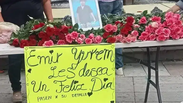 La señora Odalis salió al centro de Rioverde con una mesa llena de flores y un cartel en el que señalaba que ese pequeño detalle era de parte de su hijo Emir Yurem, un joven que fue secuestrado y asesinado a finales del 2024. Las mujeres que se acercaron a recibir una rosa, regalaban un emotivo momento al también abrazar a Arvizu como muestra de solidaridad con su caso.