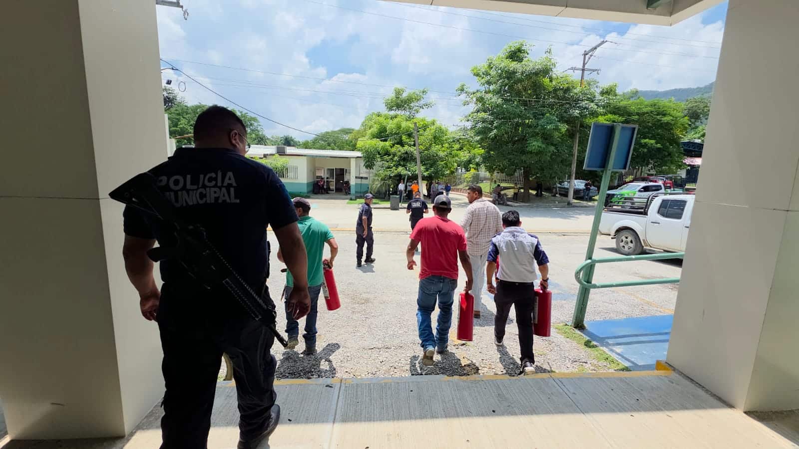 Este viernes en punto de las 12:00 horas, frente a las instalaciones del Hospital Básico Comunitario de Aquismón, se llevó a cabo el Simulacro Nacional sobre Incendios.