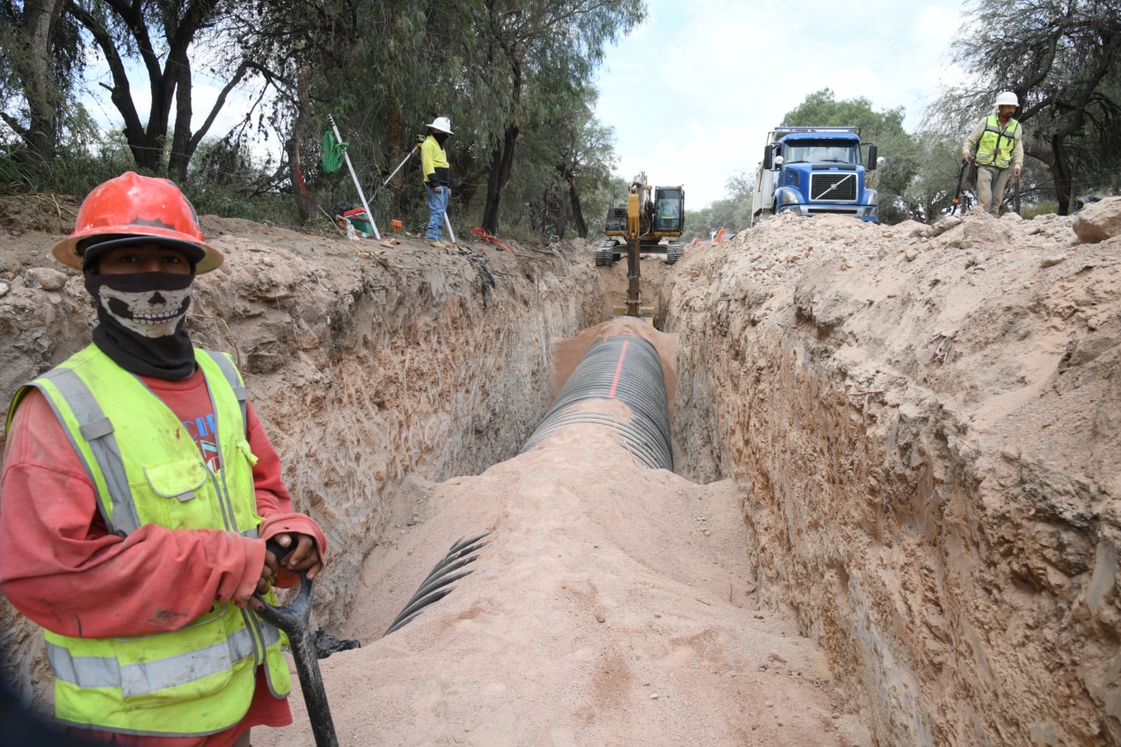 El edil explicó que actualmente las labores registran la construcción de más de un kilómetro de la línea de drenaje sanitario y casi 300 metros del colector, así mismo, se trabaja con tres frentes simultáneos con preparación del terreno y colocación de tubería. El ducto del drenaje contempla tubería de 24 pulgadas, mientras que el del colector, de 60, garantizando gran capacidad para la funcionalidad del proyecto, dijo.