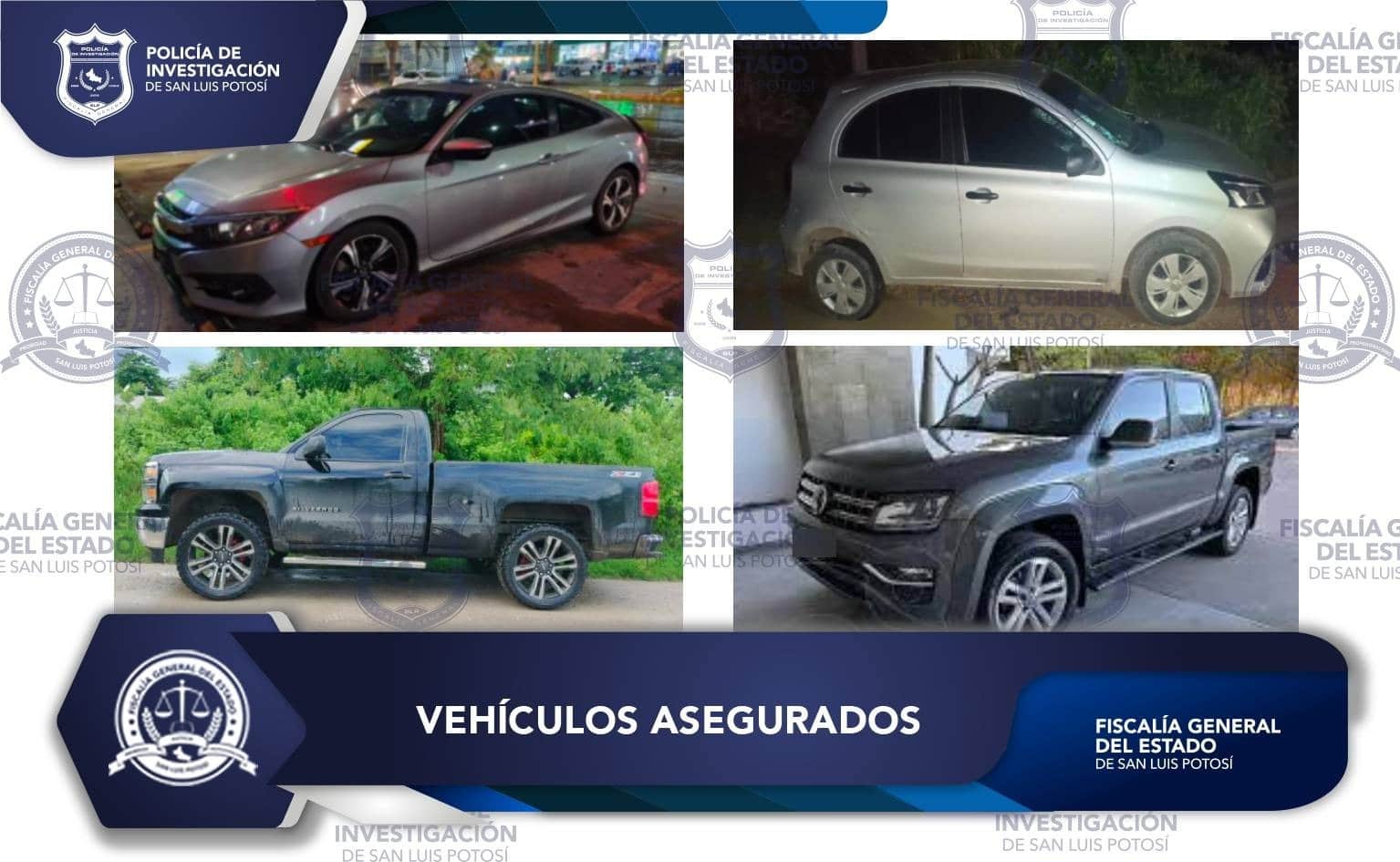 Elementos de la Policía de Investigación (PDI) de la Fiscalía General del Estado de San Luis Potosí (FGESLP), en distintas acciones, realizaron el aseguramiento de cuatro vehículos que contaban con reporte de robo vigente, fueron localizados en la capital de la entidad y Ciudad Valles.