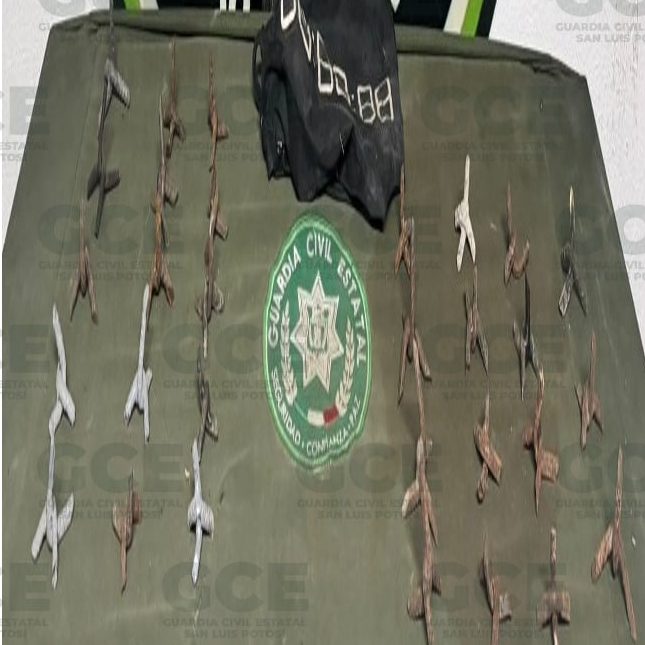 En el primer hecho, ocurrido en Ciudad Valles, los agentes estatales detuvieron a un individuo a quien se le encontraron 10 artefactos metálicos para dañar neumáticos, además de un teléfono celular y una motocicleta, los cuales fueron asegurados como parte del procedimiento.