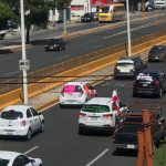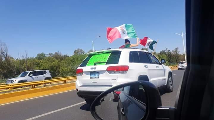 En sus vehículos, muchos de ellos de lujo, se pasearon por gran parte de la avenida Salvador Nava mientras ondeaban banderas de México. En las ventanas de sus carros, pintaron sus consignas.