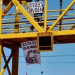 También recorrieron la avenida Chapultepec y, en la intersección con los puentes, se bajaron para subirse al puente peatonal que cruza frente a plaza Citadella para colgar sus mantas. La más grande decía: Andrés López en San Luis Potosí no te queremos.