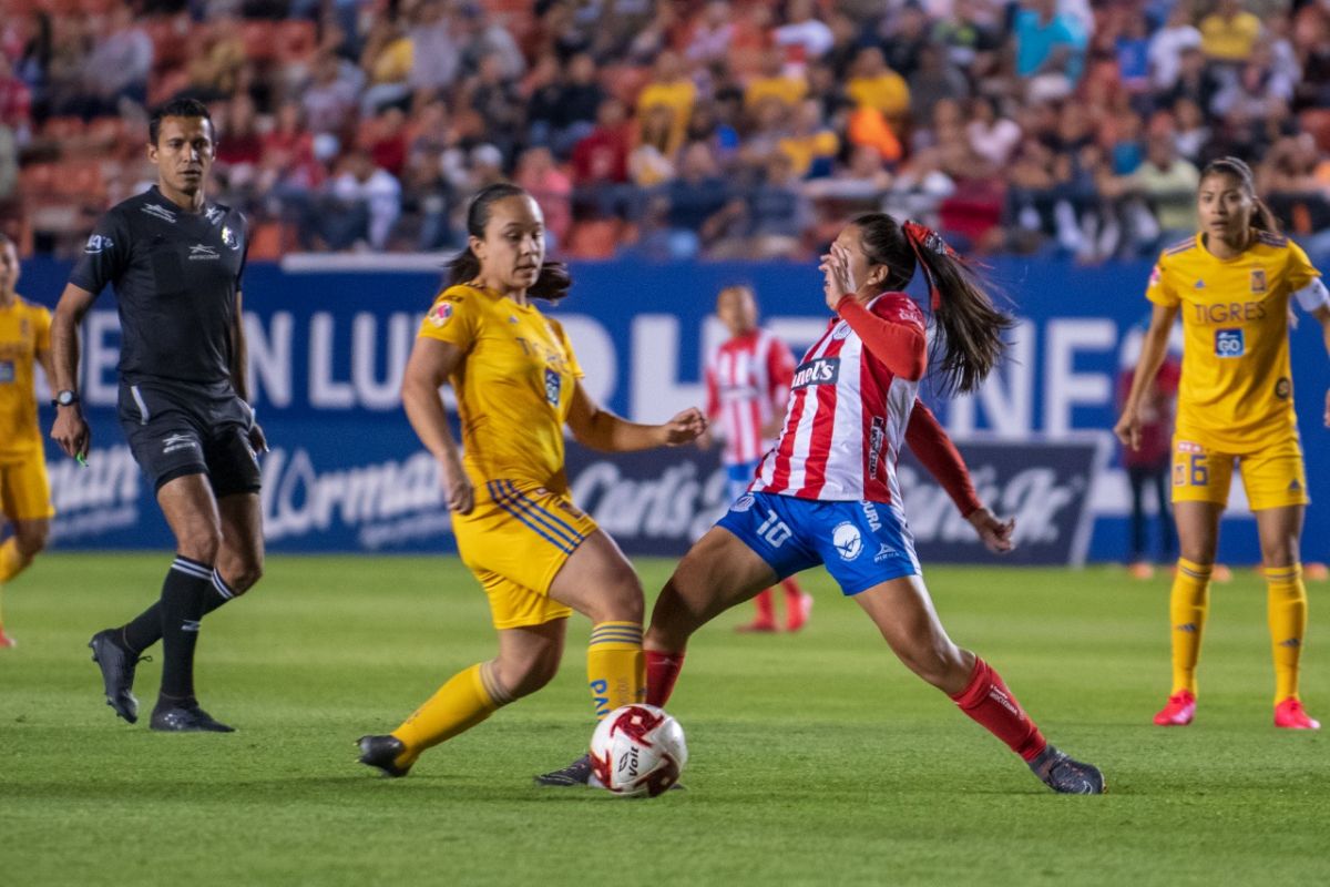 Atlético de San Luis no lograba reaccionar y a los 30’ de la primera mitad, un penal cobrado por Katty Martínez pondría sentencia en el marcador. A pesar de la ya inminente goleada, el cuadro felino no detuvo su búsqueda de ampliar el marcador y a los 32’ Sandra Mayor demostraría que llegó en plan grande para anotar su tercer gol del partido y el cuarto para Tigres.