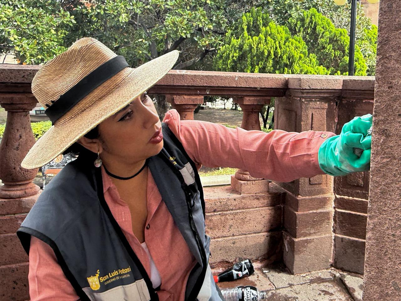 Ayuntamiento de SLP elimina pintas en monumentos históricos de Plaza de Armas
