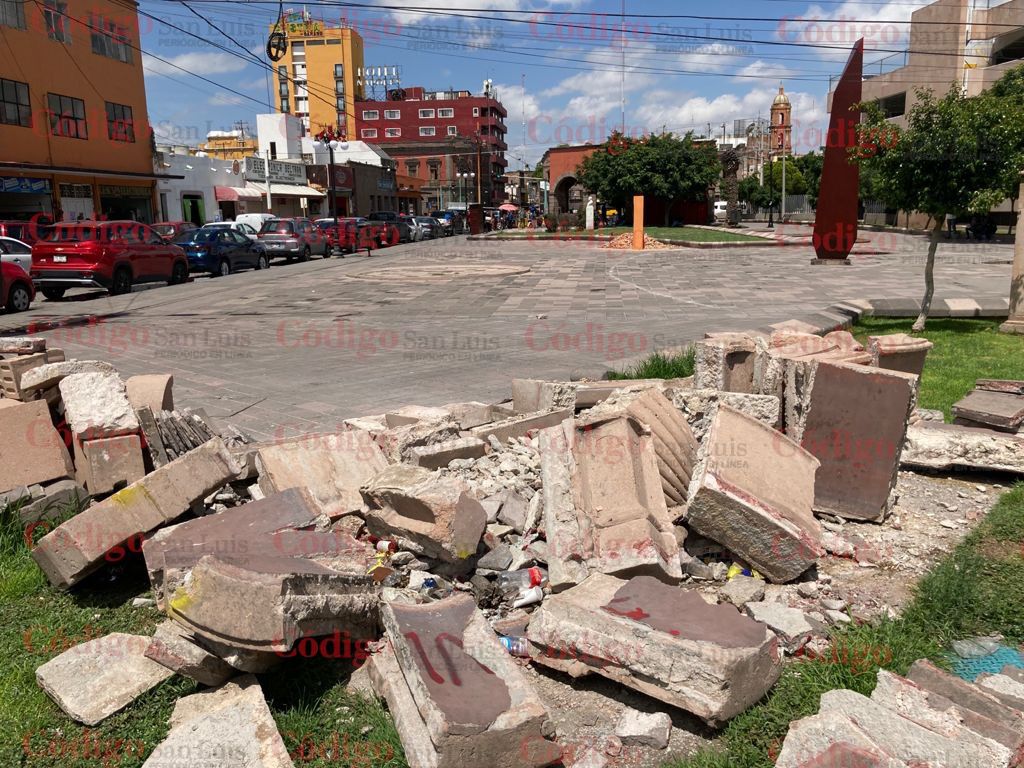 En esta ocasión se hace de la vista gorda y permite la destrucción de cantera y bancas, vecinos indican que sumado a esto esta la falta de limpieza por parte del ayuntamiento, quienes realizaron la destrucción y dejaron los trozos esparcidos por todo el lugar, cuando es un punto de vialidad contante para muchos potosinos.