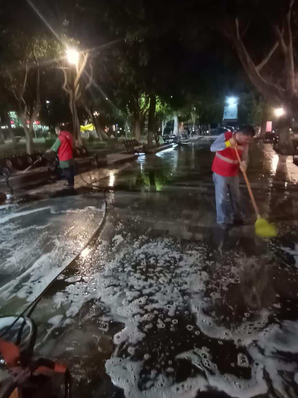 Señaló que este, como muchos otros de los trabajos que lleva a cabo el personal del área de Imagen Urbana, deben realizarse en horario nocturno para no interrumpir las actividades comerciales ni afectar a las familias que a diario conviven o transitan por el lugar.
