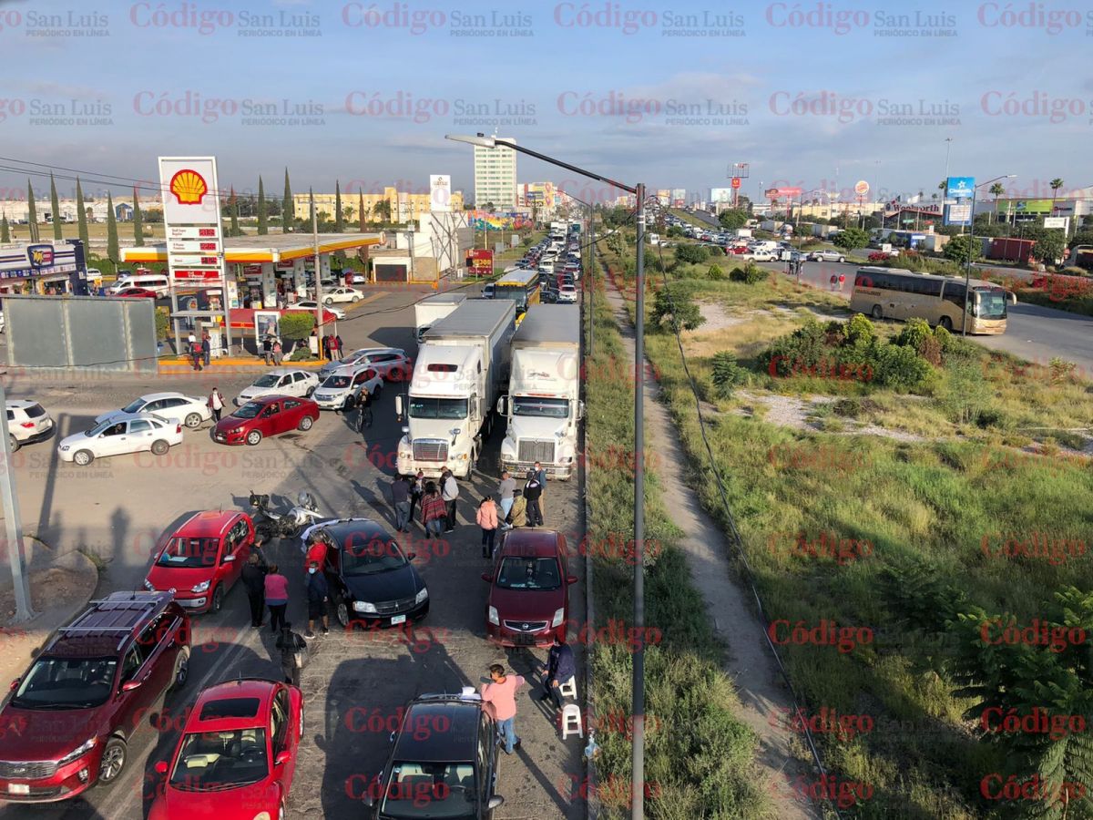 Nuevo bloqueo por parte de ministerios públicos y agentes de investigación colapsa la capital potosina y bloquea la actividad industrial. Desde 6:00 am cientos de vehículos quedaron varados.