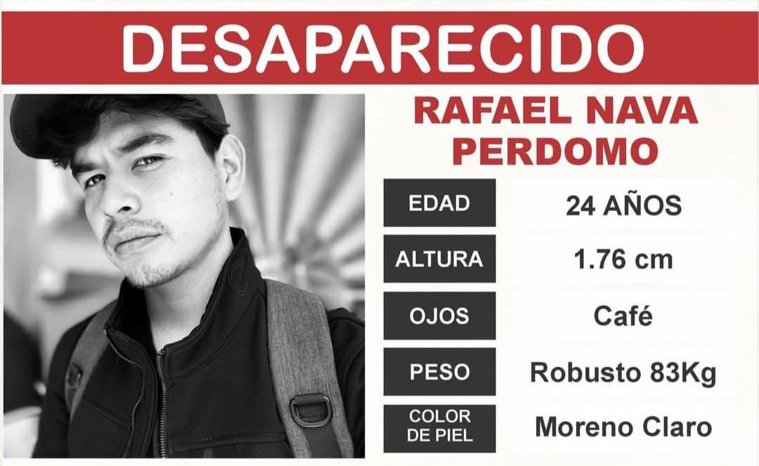 San Luis Potosí, SLP.- La desaparición de un joven en la capital potosina ha generado preocupación entre familiares, amigos y ciudadanos, quienes han iniciado una intensa campaña en redes sociales para dar con su paradero. Se trata de Rafael Nava Perdomo, de 24 años, quien fue visto por última vez el viernes 4 de julio en la colonia Estadio, en San Luis Potosí.