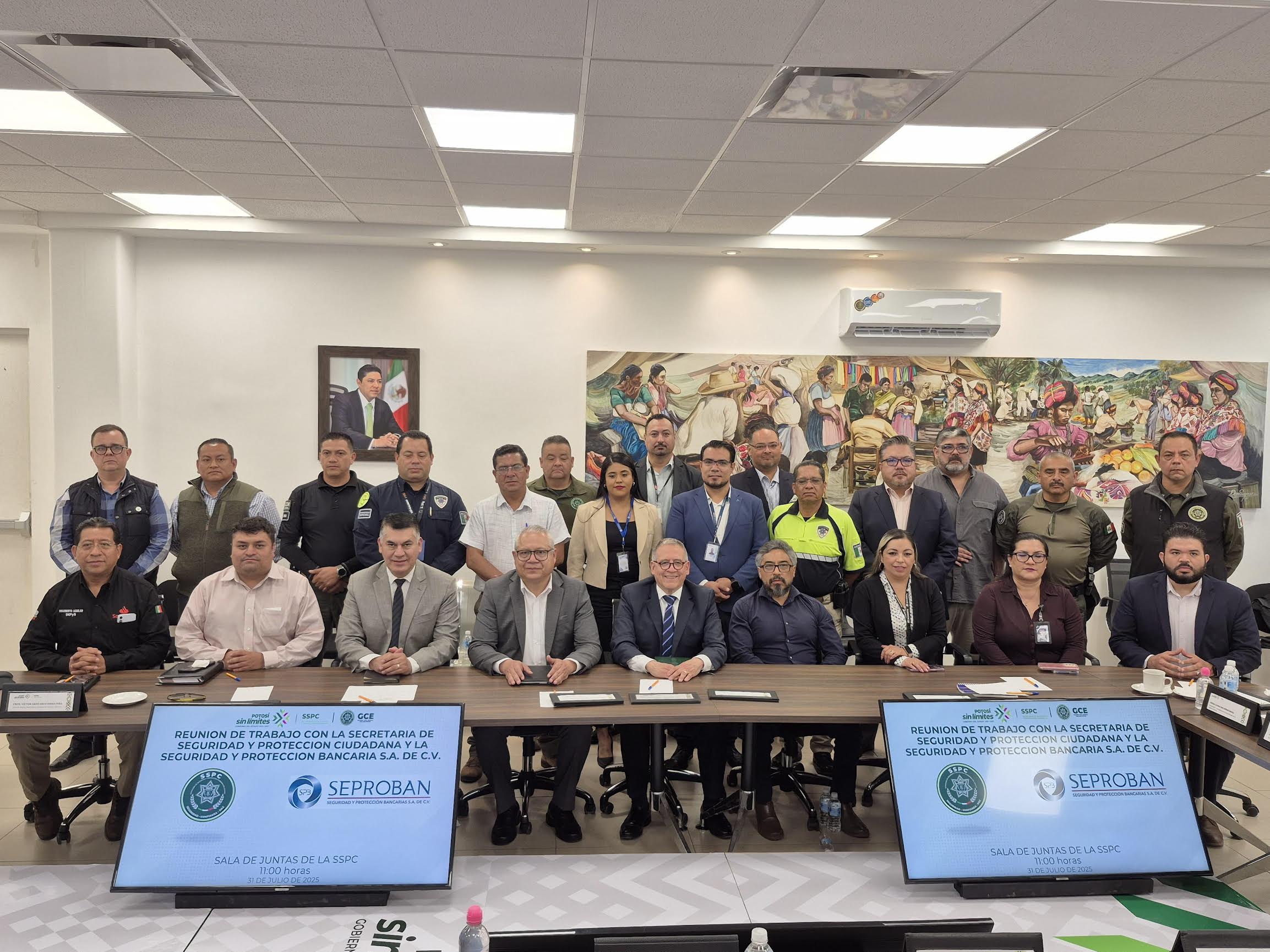Para reforzar la estrategia de prevención y seguridad contra los delitos patrimoniales en las instituciones bancarias, el titular de la Secretaría de Seguridad y Protección Ciudadana del Estado, Jesús Juárez Hernández, sostuvo un encuentro con integrantes de Seguridad y Protección Bancarias (SEPROBAN).