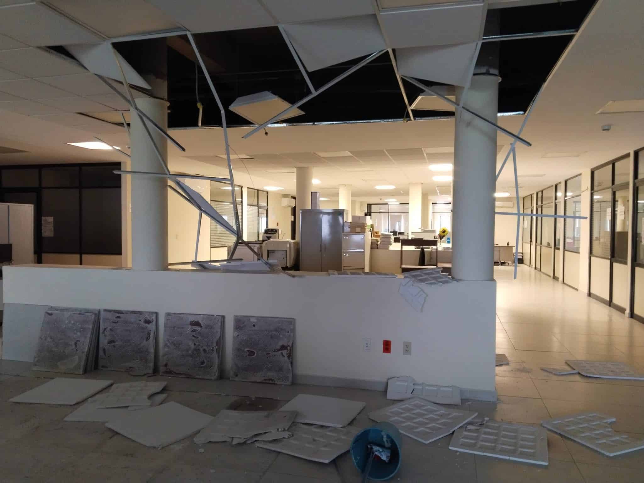 Este lunes, al reiniciar labores, el personal se encontró con un escenario alarmante: el plafón del segundo piso colapsado, lámparas desprendidas, pisos encharcados, conexiones eléctricas expuestas, aires acondicionados mojados y paredes visiblemente humedecidas. En varias áreas, como Administración, Recursos Humanos, Estadística, Educación y Primer Nivel, el mosaico del piso se ha desprendido casi por completo, evidenciando daños estructurales que no pueden seguir ignorándose.