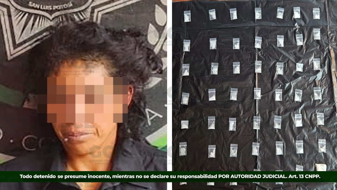 Los operativos constantes de la Guardia Civil Estatal en la zona Altiplano, derivaron en la detención de Jessica “N” de 39 años, por la posesión de 49 dosis de “cristal”, quien fue sorprendida en el eje estatal Moctezuma-Villa de Arista.