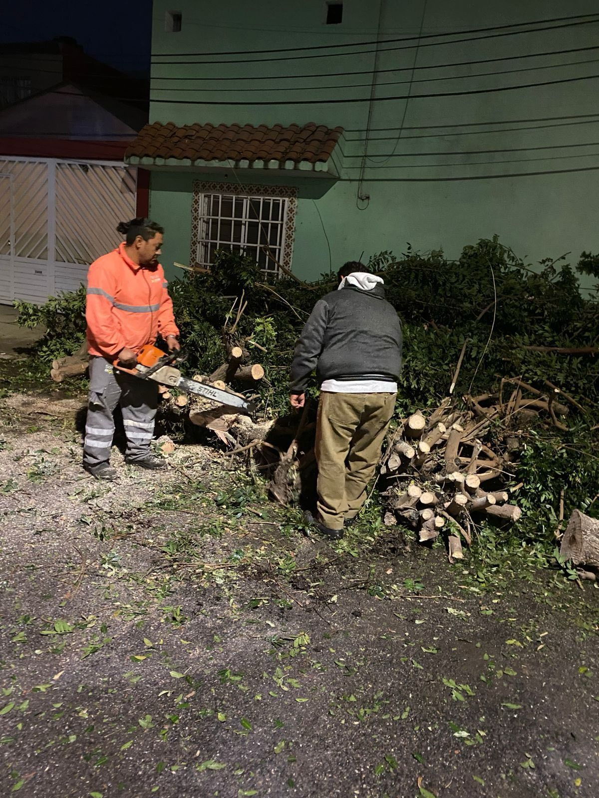 Personal de la Dirección de Servicios Municipales atendió árboles caídos o en riesgo en al menos cinco puntos de la ciudad,