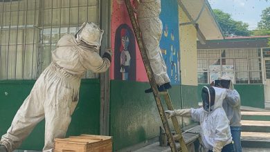[GALERÍA] Retiran enjambre de abejas de escuela primaria en Valles