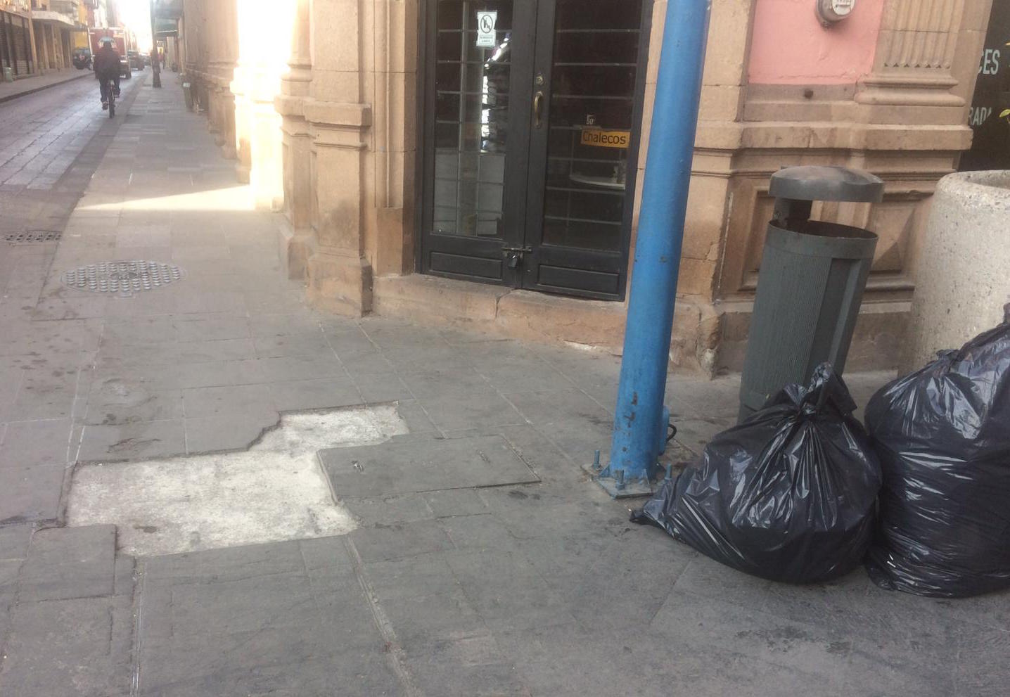 A pesar de ser considerado como Patrimonio Mundial por la Unesco, debido a que está dentro del catálogo de Tierra Adentro, muchas partes del Centro Histórico se encuentran en un total abandono. Uno de los casos que más llaman la atención, principalmente por que diariamente miles de personas transitan por ahí es la calle de Zaragoza. Las bancas están destruidas, hay grafittis en las paredes de los negocios y, en las calles que cruzan estas vías hay baches que llevan años sin ser arreglados.
