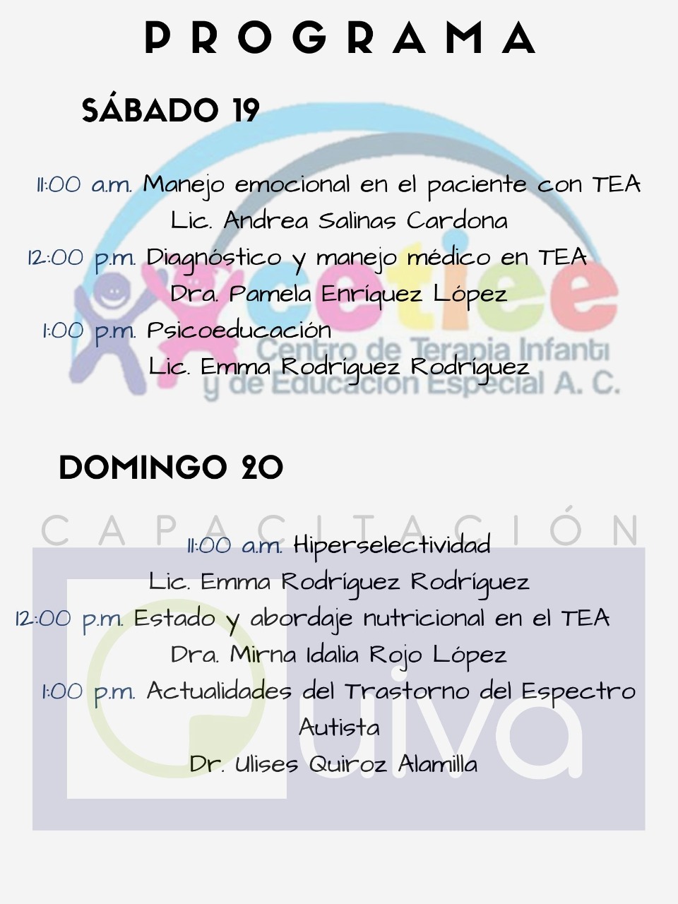 El Centro de Terapia Infantil y Educación Especial A.C. (CETIEE), que atiende a niños con síndrome de Down, autismo y discapacidad intelectual invita al ciclo de conferencias Trastorno del Espectro Autista.