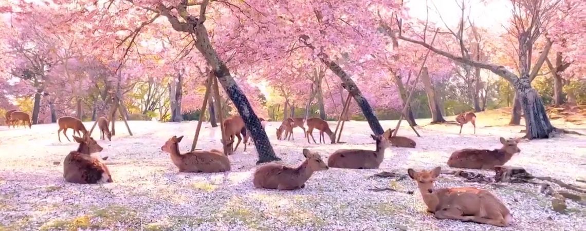 El día 7 de abril, el Gobierno japonés declaró el estado de alarma, lo que redujo drásticamente la movilidad de las personas, justo cuando se producía el tiempo de floración de los cerezos. Al día siguiente, algunos curiosos decidieron acercarse al parque para pasear y lo que se encontraron fue la idílica imagen de decenas de ciervos descansando bajo los árboles en flor. Una escena que no suele darse debido a las aglomeraciones de gente que se acercan en estas fechas hasta el Parque de Nara para poder disfrutar de los animales y darles de comer o para realizar un pequeño picnic bajo las ramas de los cientos de árboles.