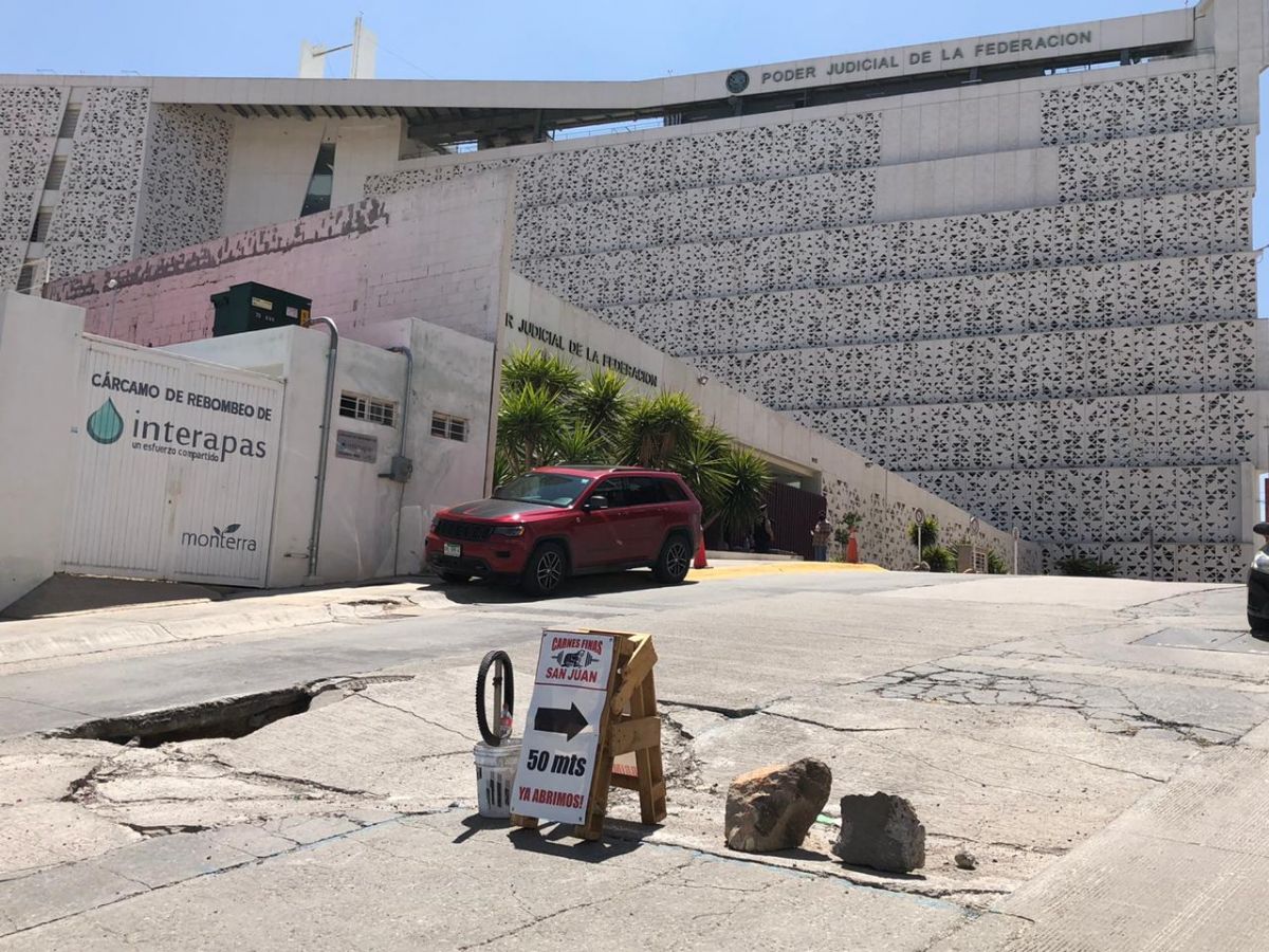 El origen de este socavón, según explican, se debe a un colapso en el sistema de drenaje y es que, como si toda la carga de desechos sanitarios que se genera en el Poder Judicial no fuera suficiente, en la zona se han comenzado a construir grandes desarrollos inmobiliarios y complejos departamentales que están saturando el endeble sistema de desagüe.