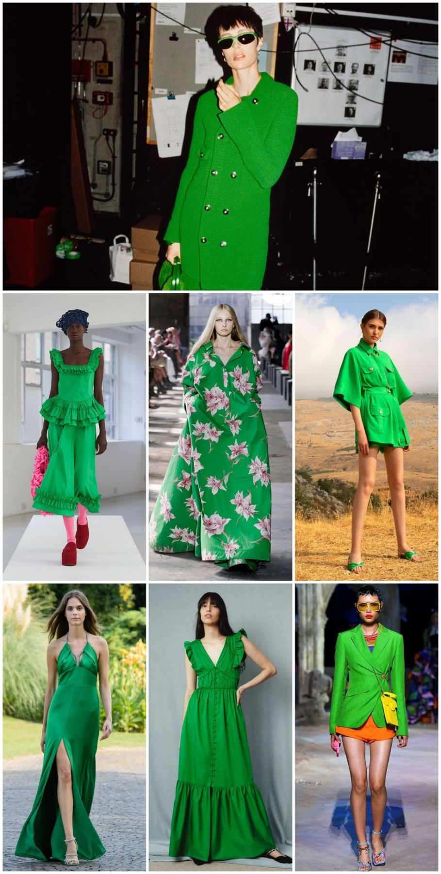 Este año el verde vuelve, mejor dicho no se ha ido, ya que en esta primavera-verano, de hecho Instagram comienza a inundarse con prendas de esta tonalidad y puedes combinarlo con el naranja y el azul  de tonos fuertes.