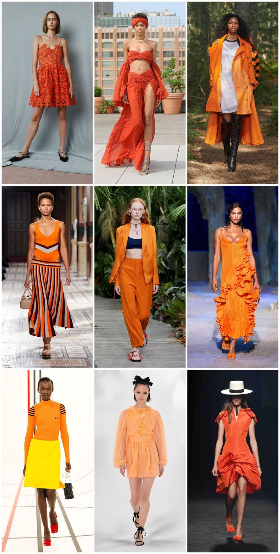 Quizá este es el tono más complejo de esta lista y es que el naranja no es muy bien visto, ya que a pocos les favorece y todos lo asocian más para una época más otoñal, pero la variante de tonos ayudará esta vez. El naranja en su tonalidad más fluor, se convertirá en uno de los protagonistas de las pasarelas y arriba en las tendencias de las mejores firmas.