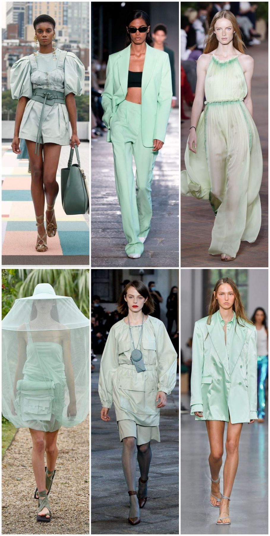 Se ha convertido en un tono habitual en las pasarelas  primaverales, la tonalidad más pastel del verde vuelve dispuesta a refrescar todos los rostros y siluetas.