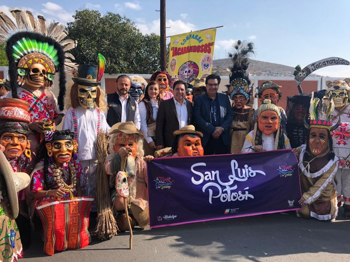 Para dar a conocer el legado de las tradiciones ancestrales de la Huasteca Potosina, una comparsa de huehues de Axtla de Terrazas, representó a San Luis Potosí en “La Magia de los Carnavales de Hidalgo”, ante más de 50 mil espectadores, informó el Secretario de Turismo (SECTUR), Arturo Esper Sulaimán.
