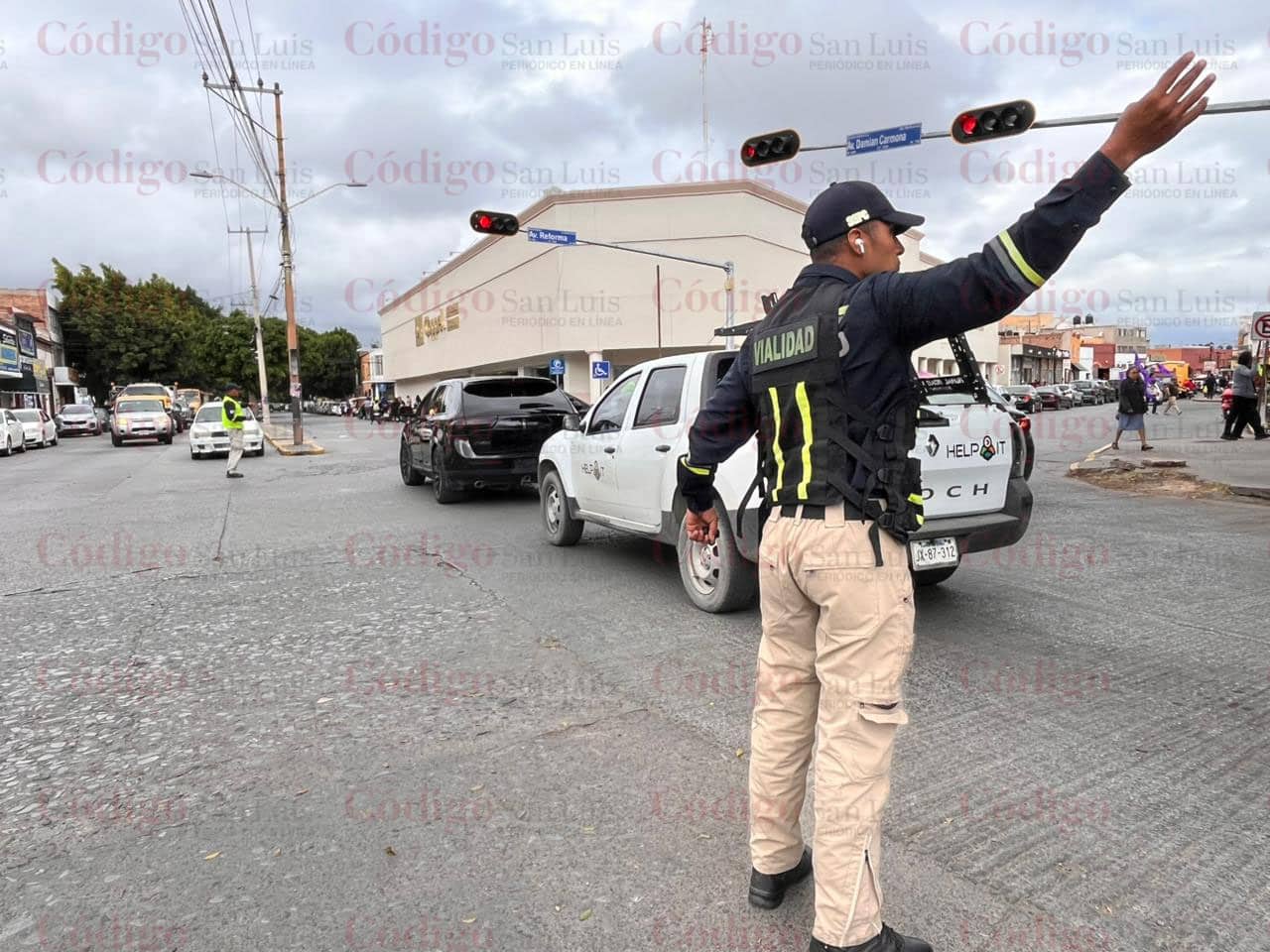 Ante la situación, policías de vialidad de la capital potosina se apersonaron en los cruces para regular manualmente el tránsito