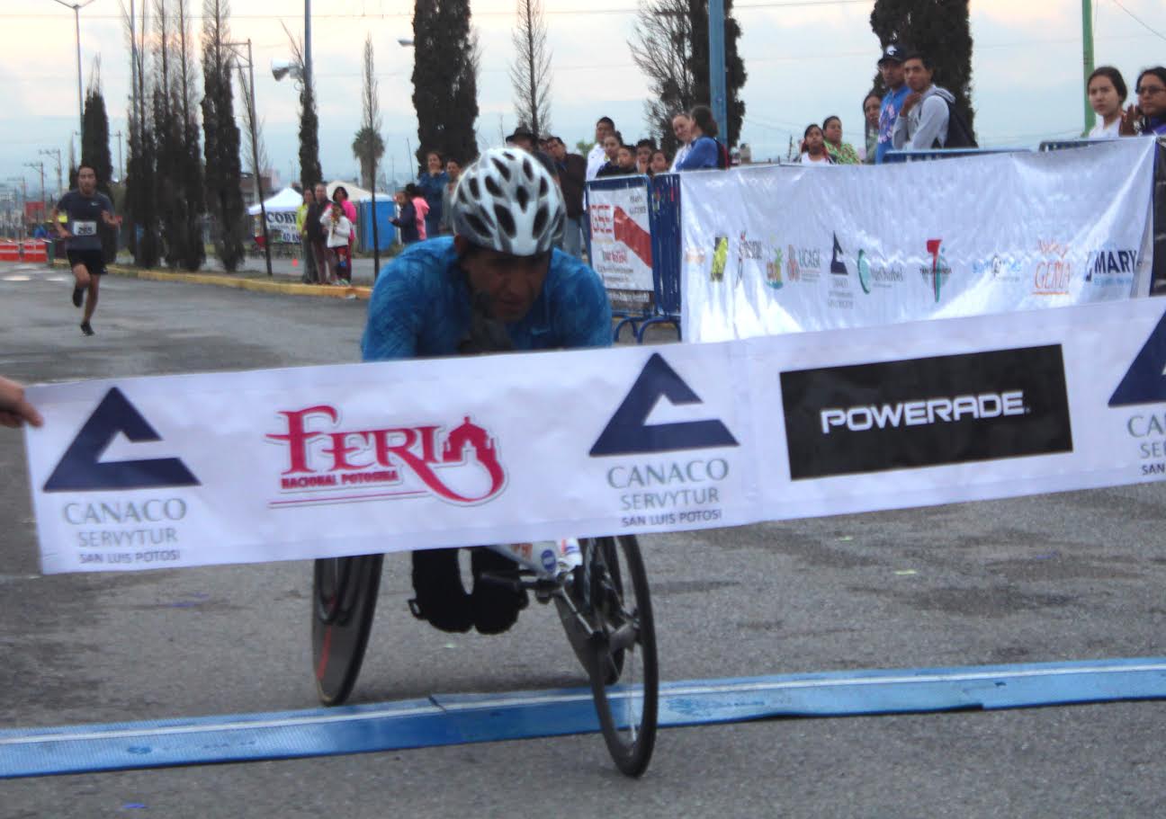 En la categoría de silla de ruedas el vencedor fue Armando Orozco Cázares con tiempo de 35:13, seguido de José Leonel Aguilar Morales quien registró una hora con 3 minutos y 59 segundos mientras que José Cruz Zapata en tercer sitio invirtió una hora con cuatro minutos y 16 segundos.