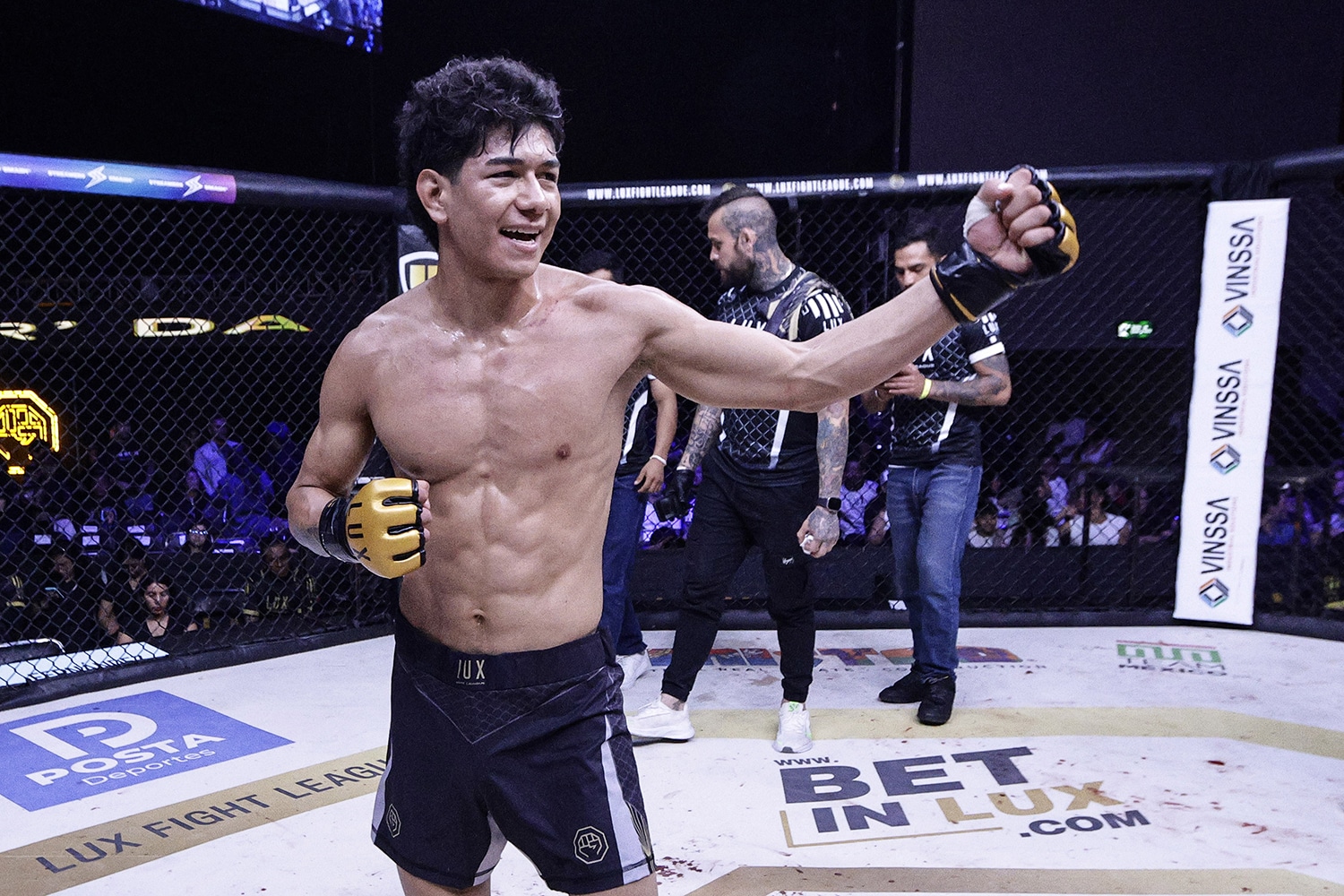 “Quiero ser el mejor del mundo, ser un peleador que resalta, quiero ser doble campeón, llegar a la UFC, estoy trabajando por ello, gracias a mi equipo, a todos mis compañeros de entrenamiento, a Drako Cossío”, expresó el joven de 22 años.