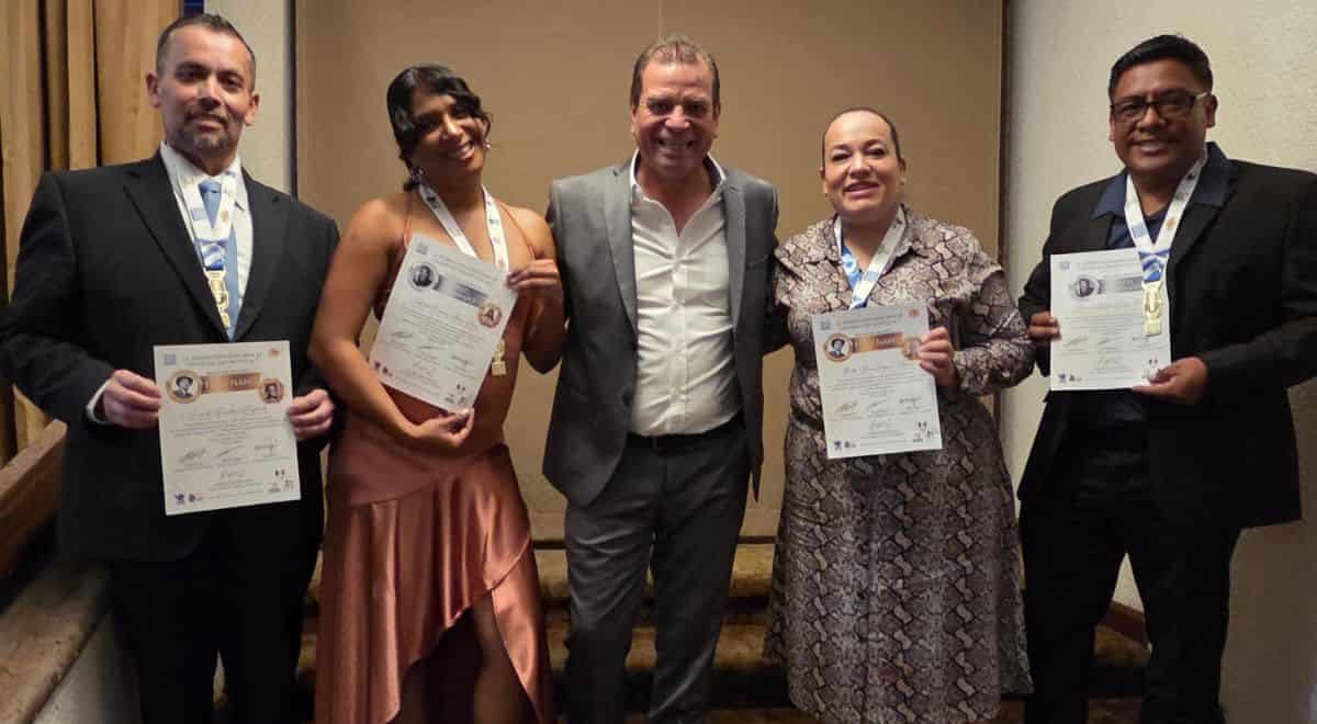 AL evento acudieron los cuatro cronistas deportivos potosinos acreedores al galardón, mismos que fueron acompañados por el presidente del ASPOCRODE (Asociación Potosina de Cronistas Deportivos) Juan Ignacio Prado.