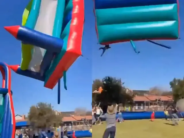 Durante un evento escolar en Krugersdorp, Sudáfrica, un castillo inflable salió volando por una ráfaga de viento mientras varios niños jugaban dentro, dejando a dos menores gravemente heridos. El incidente ocurrió en la escuela primaria Laerskool Protearif durante el festival Protea Fees.