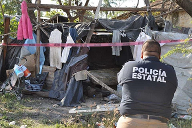 Un indigente, del que se presumía había muerto por congestión alcohólica, resultó haber sido decapitado y cercenadas sus piernas por un compañero, quien lo metió en una bolsa, al ser sacado se dieron cuenta estaba decapitado y sin piernas, el presunto terminó por confesar su felonía.