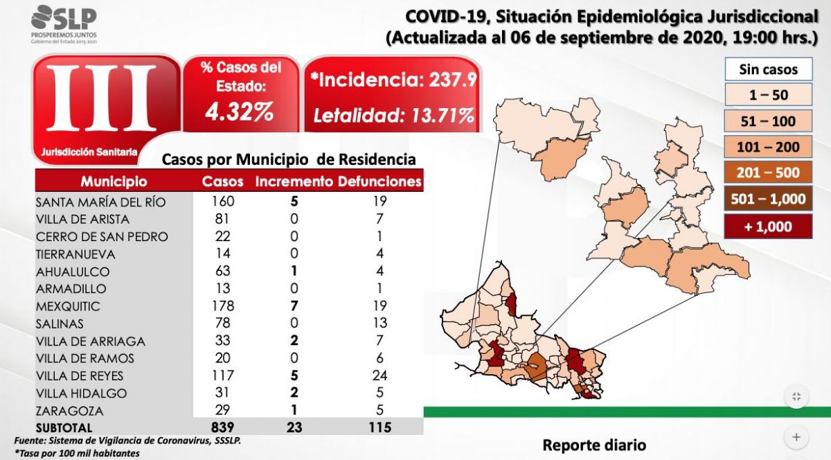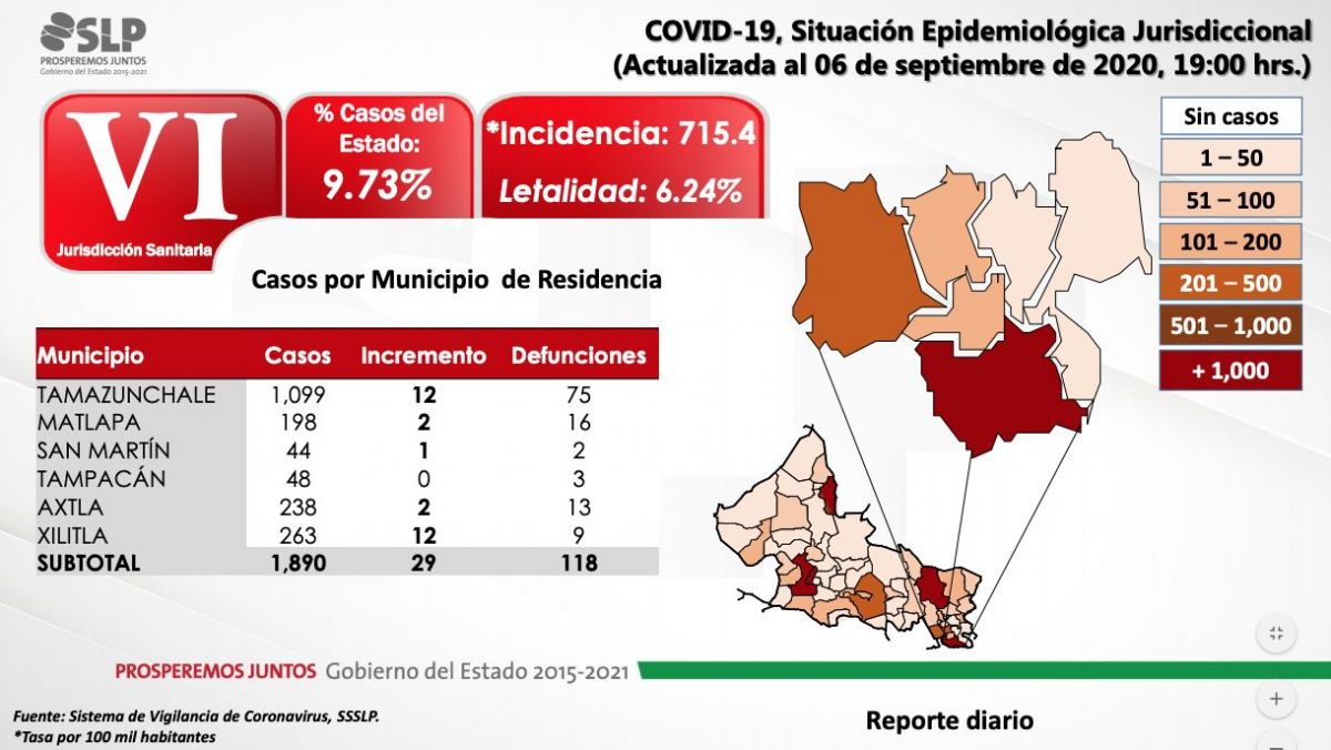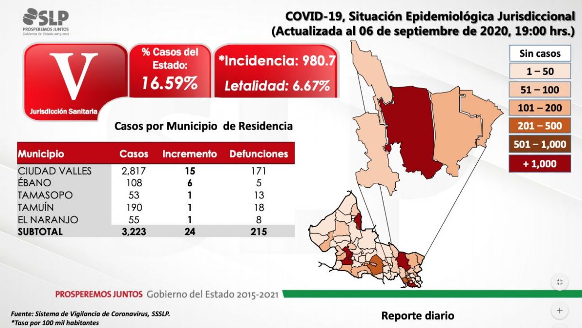 La capital potosina continúa como el municipio con mayor número de contagios Covid, seguido de Valles, Soledad y Tamazunchale.