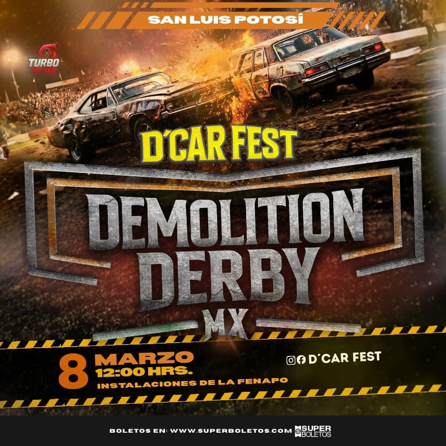 San Luis Potosí será sede de uno de los eventos más espectaculares que puedan vivir los potosinos como lo es el Demolition Derby de D’Car Fest cual tendrá como escenario las instalaciones de la FENAPO el próximo 8 de marzo en punto de las 12:00 horas en donde habrá alto grado de adrenalina.