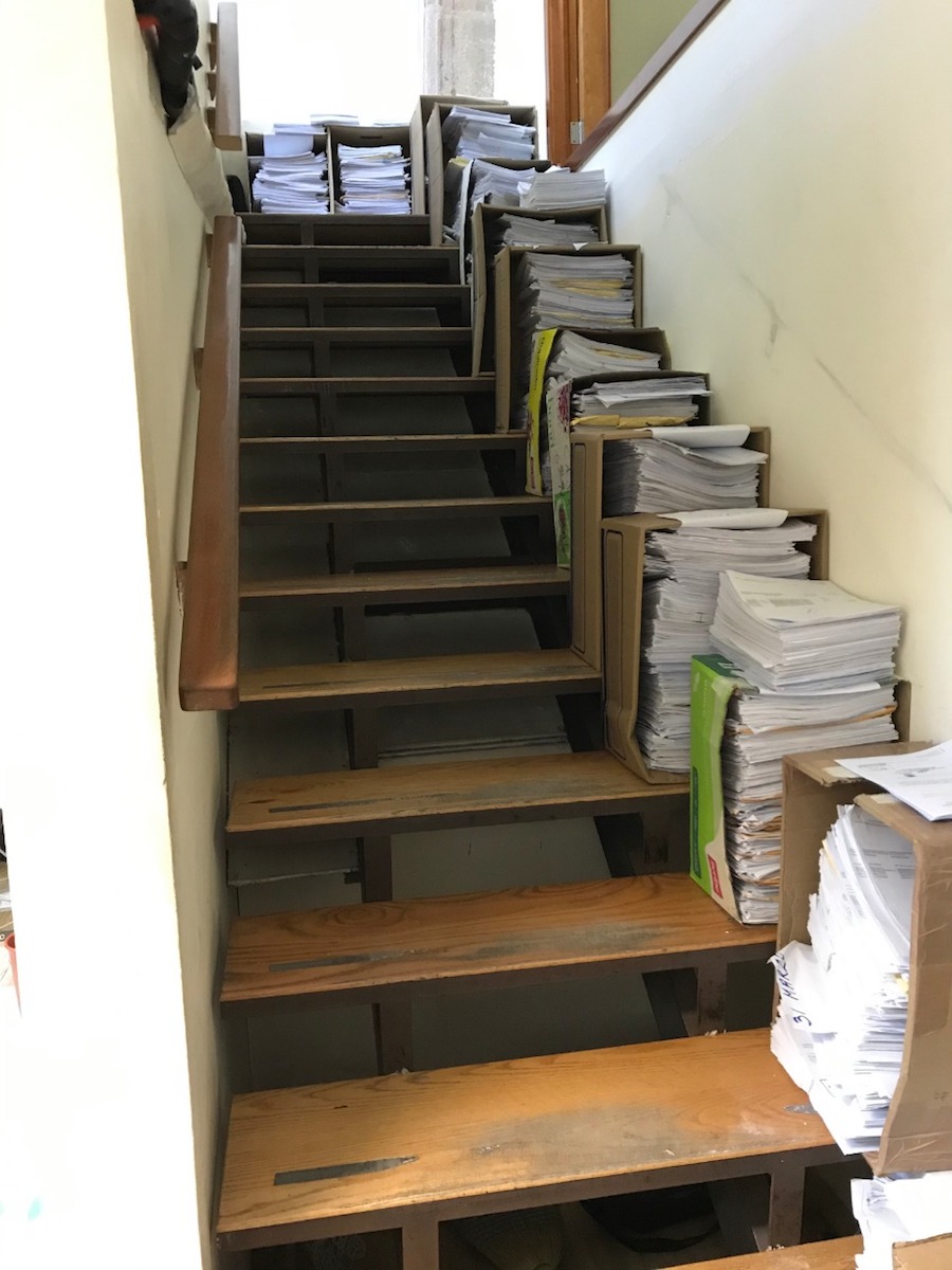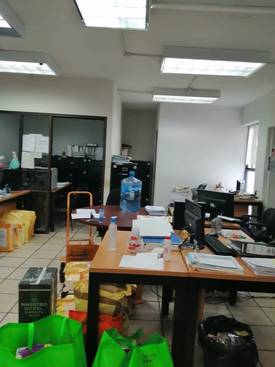 Es increíble que engañen a los potosinos diciendo que limpian y sanitizan, cuando se tienen escaleras llenas de cajas con documentos que no han movido en meses o en años. El SUTSGE no miente, las imágenes del caos hablan por sí solas; si fuera verdad lo que afirman al asegurar que cuidan de la ciudadanía y del personal: ¿cómo podrían explicar la presencia de esas cajas con documentación en las escaleras, montones de placas tiradas, botes de basura sin tapa, cajas dispersas por donde quiera y sobres con documentación oficial en el piso?, ¿acaso no tienen archiveros, o bodegas para enviar todo ese montón de cajas?, ¿cómo se podrían limpiar esos atiborrados espacios? y ¿cómo pueden decir que sanitizan bajo esas condiciones?