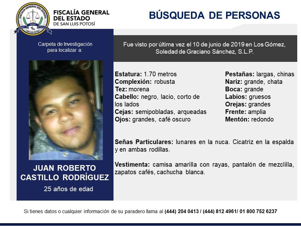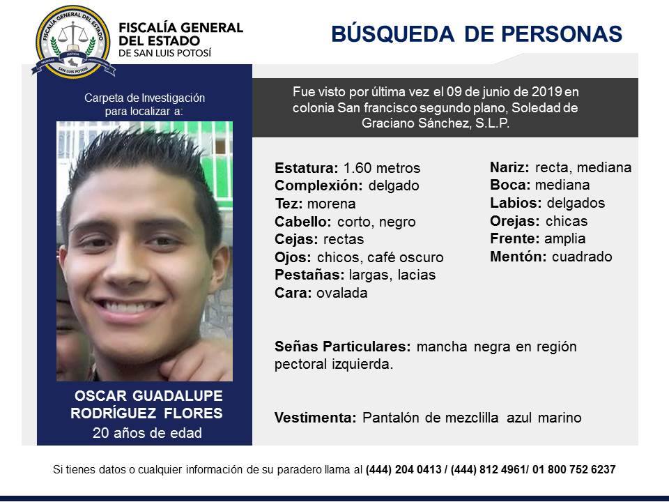 Claudia Rodríguez Puente de 25 años de edad fue vista por última vez el 20 de junio en el fraccionamiento Privada de Agaves de Soledad de Graciano Sánchez. Cuando desapareció vestía una blusa blanca, pantalón de mezclilla, botas café y una bolsa negra con café oscuro. Un día después comenzó la búsqueda, con un mensaje de la Fiscalía donde pedía a las familias no esperar horas para reportarlo a las autoridades.