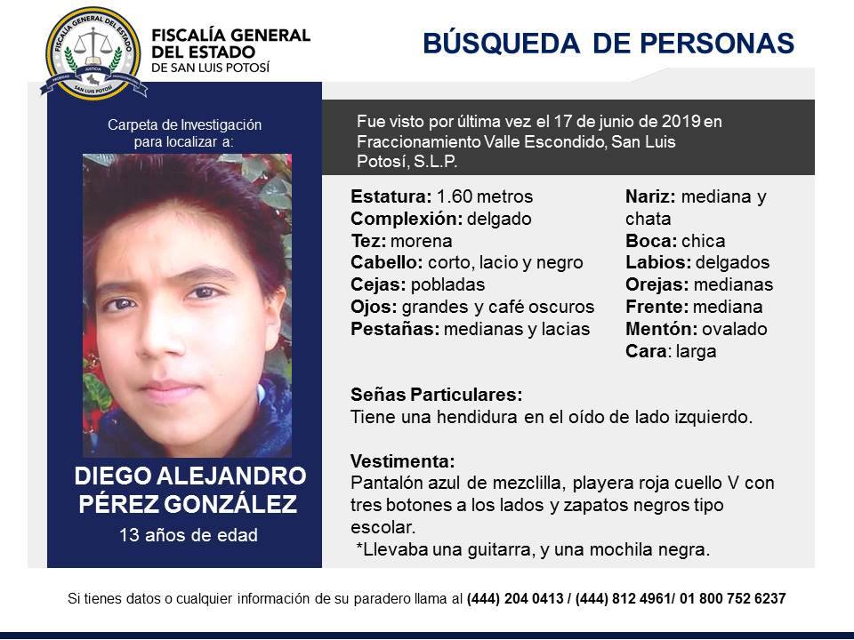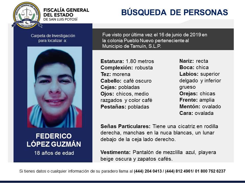María Amarandy Estrada Juárez de 21 años de edad desapareció en el fraccionamiento La Lomita de Soledad de Graciano Sánchez. De complexión robusta, tez morena, cabello largo, 1.50 de estatura y como seña particular, un lunar en la parte trasera de la oreja derecha.