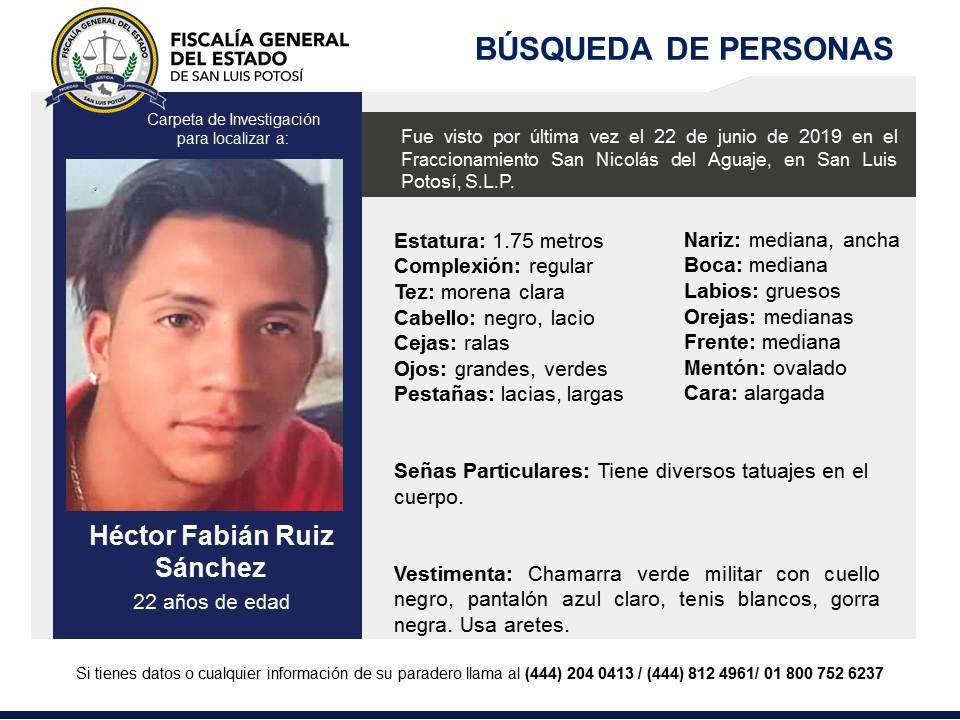 Era el 17 de junio cuando ya no se supo nada de Nancy Saldaña Rodríguez de 22 años de edad. Al momento de desaparecer estaba en la colonia Progreso de San Luis Potosí. De cabello largo color negro, tez blanca, complexión mediana y 1.50 metros de estatura, varios tatuajes en el cuerpo y vestía un pantalón de mezclilla, una camisa blanca y tenis grises.