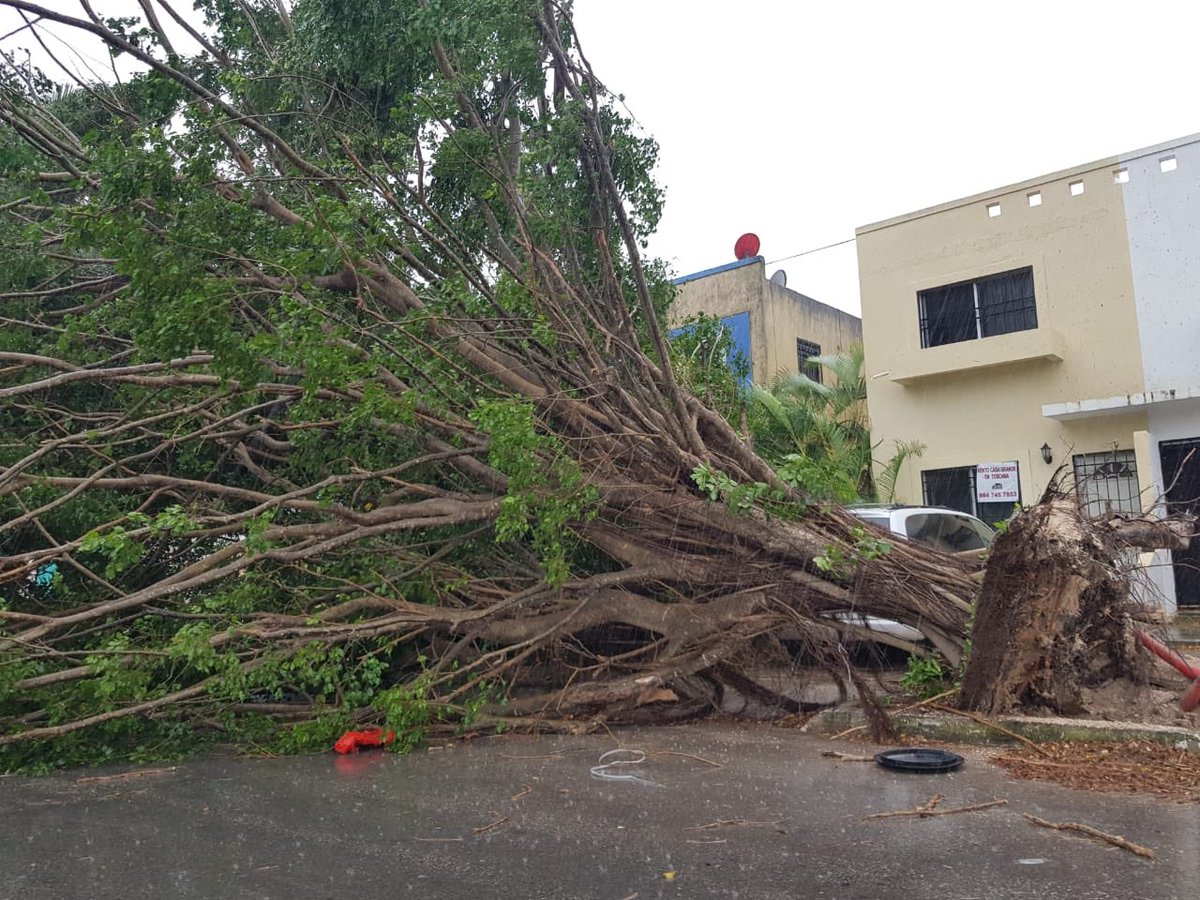 En la ciudad de Mérida y otras poblaciones se reportaron caída de árboles, espectaculares y viviendas dañadas, ante ello la secretaria de Seguridad Pública (SSP) realizó un operativo y pidió a la población reportar cualquier incidente al 911.
