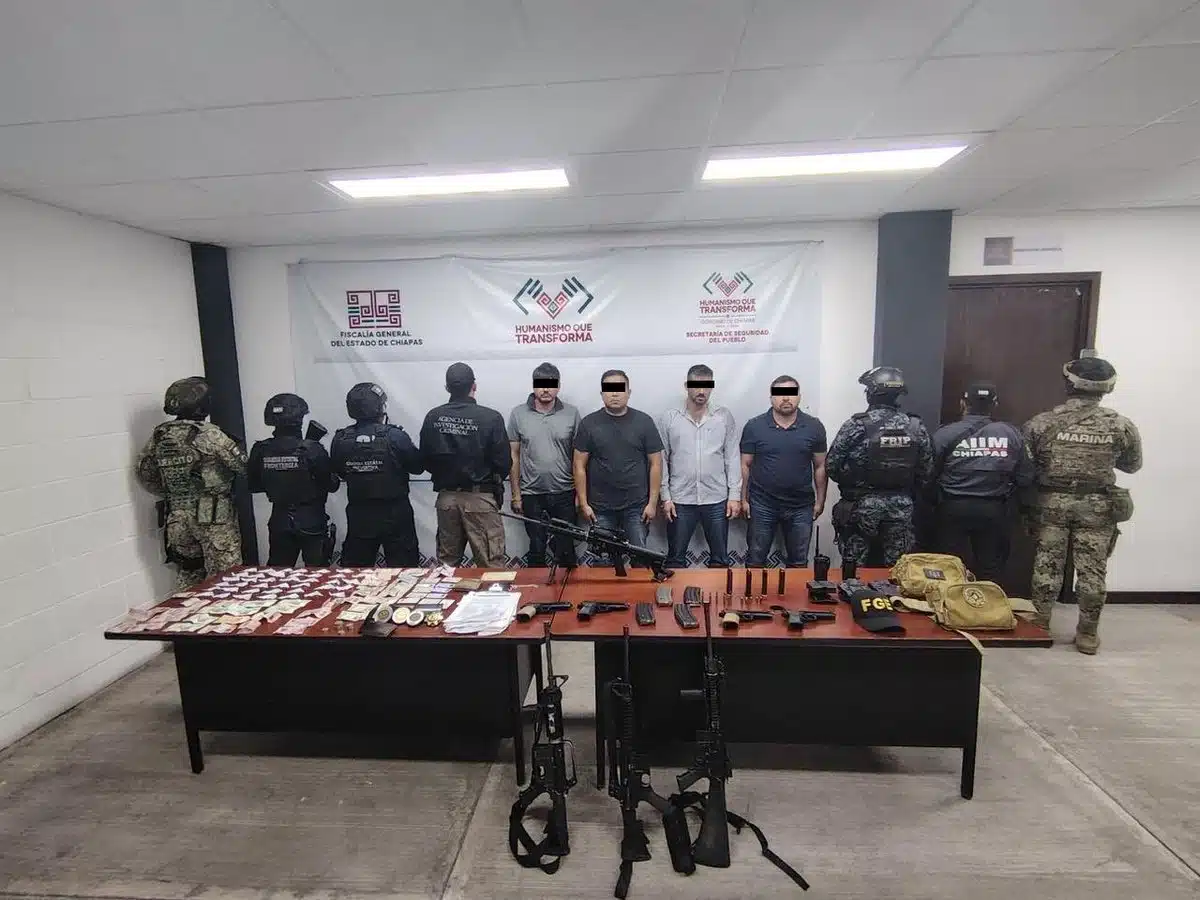 Los detenidos fueron identificados como Carlos Ramón M.M. de Palenque; Cristhian D.C., de Tijuana; Jesús H.P., de Tuxtla Gutiérrez; y Jonathan M.A., de Tapachula. Todos quedaron a disposición del Ministerio Público por usurpación de funciones, delincuencia organizada y portación de armas de uso exclusivo del Ejército.