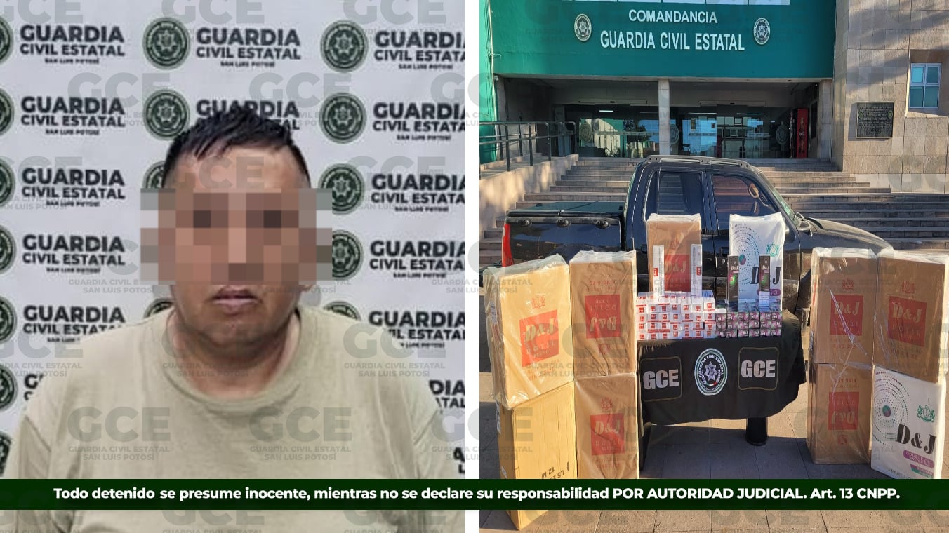 Al presunto, se le aseguraron 850 paquetes de cigarros, que no tenían documentación que acreditara su procedencia ni su importación, luego de notar que eran de origen asiático, por ello se le informó que incurría en un hecho con apariencia de delito, decomisando un total de 340 mil cigarros, así como el vehículo Ford, color negro, sin placas.