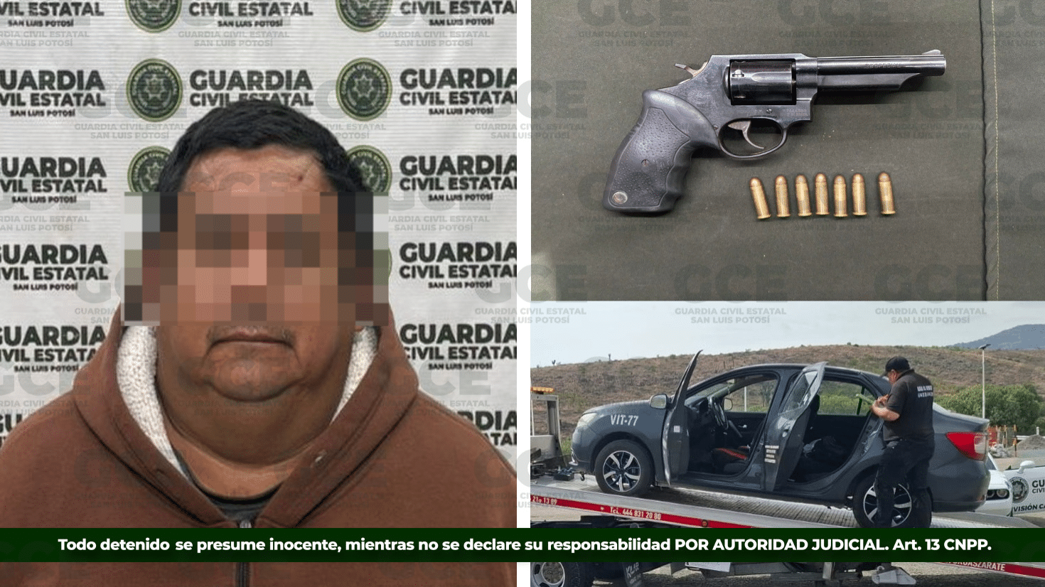 Durante labores preventivas realizadas por la Guardia Civil Estatal, a través de su División Caminos, un hombre fue detenido en el municipio de Mexquitic de Carmona, tras ser localizado en posesión de un arma de fuego.